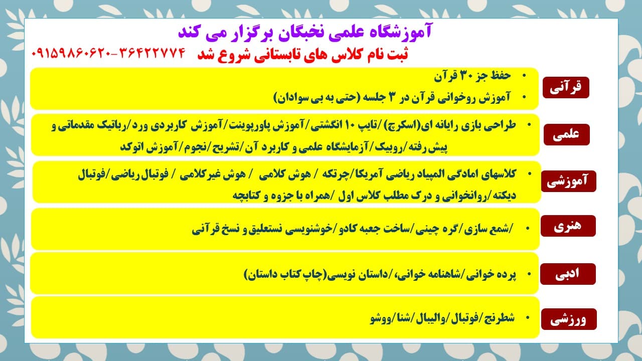 بله، کلاسهای ورزشی، هنری و علمی برای تمامی پایهها در برنامه فوقبرنامه موجود هست.